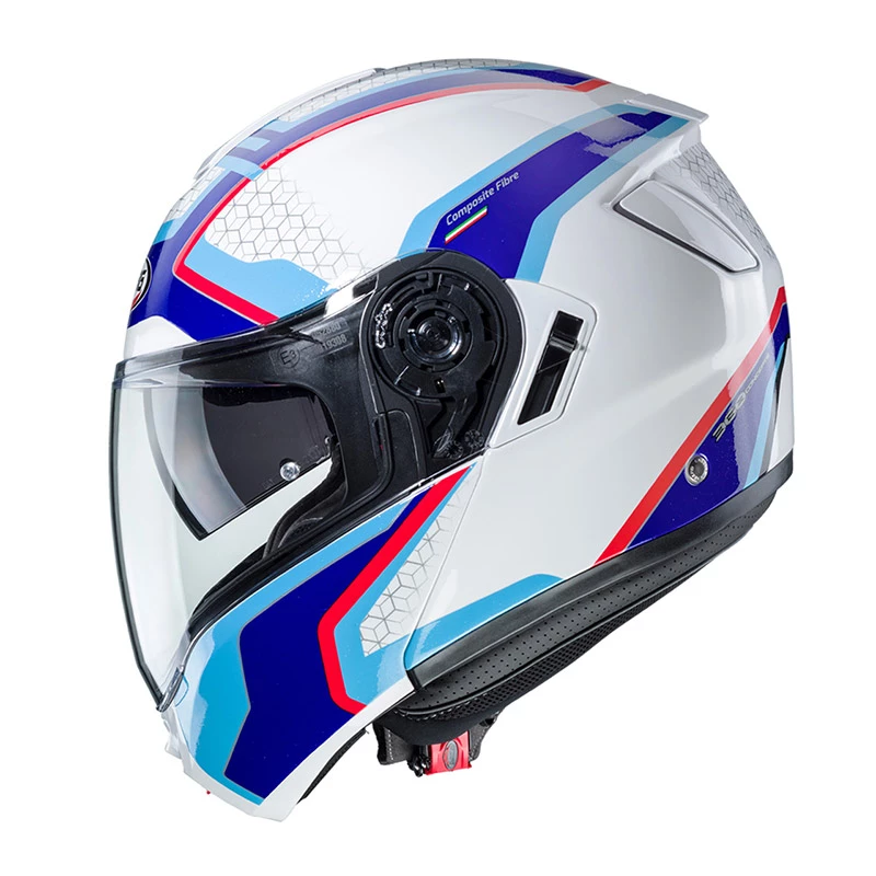 Fibra Casco Modulare Caberg Levo Sonar Bianco Blu Rosso