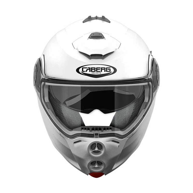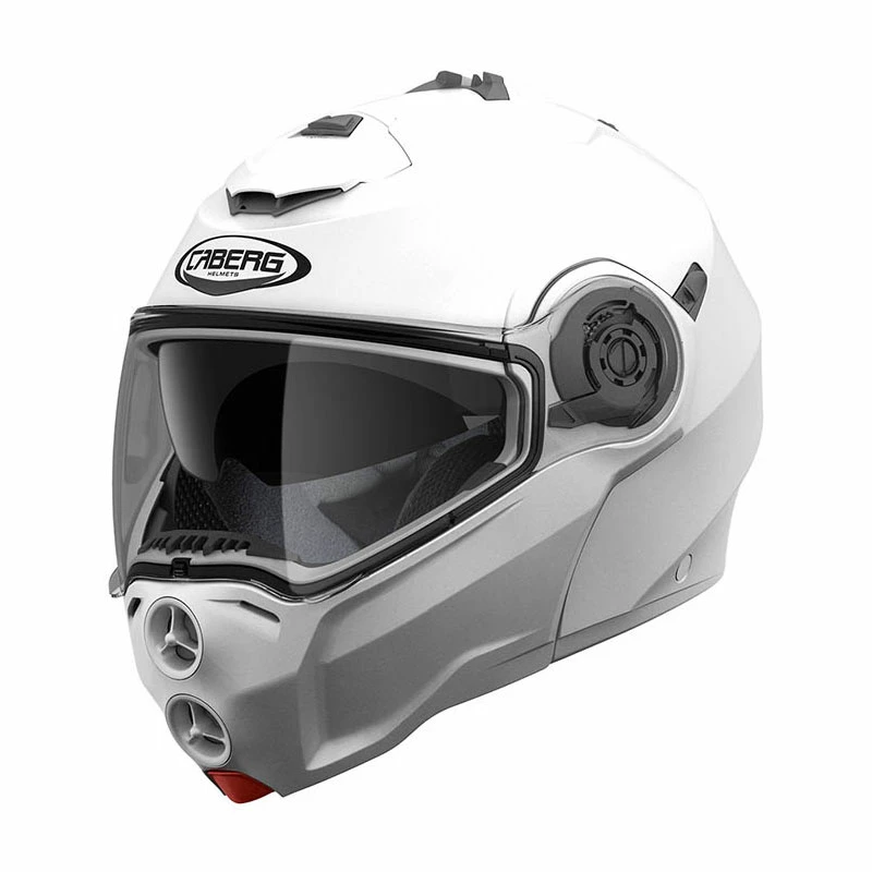 Droid è il nuovo apribile di casa caberg 100% made in italy dotato di soluzioni tecniche innovative, design estremamente aggressivo e spiccata personalità per i motociclisti che non vogliono passare inosservati. La mentoniera frontale presenta due grandi prese d’aria regolabili individualmente che convogliano l’aria sulla visiera, evitando l’appannamento nelle condizioni climatiche più estreme. L’aerazione interna è garantita inoltre da una grande presa d’aria frontale regolabile e dai canali presenti nella calotta interna del casco. Frutto dell’esperienza maturata dalla prima azienda italiana ad aver prodotto caschi apribili, Il nuovo DROID è dotato della doppia omologazione P/J che permette di guidare anche a mentoniera alzata sempre in sicurezza grazie al selettore posizionato sulla sinistra del casco che, nella posizione J, blocca la mentoniera nella posizione di massima apertura evitando così la chiusura accidentale della stessa. Grazie alle ridotte dimensioni del casco, il peso del nuovo DROID è di solo 1550 +-50 gr.