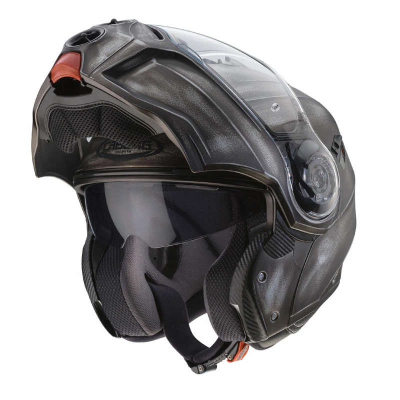 DROID è dotato dell’esclusivo sistema DoubleVisorTech che grazie ad una visiera parasole integrata facile da manovrare, permette di guidare sempre con la giusta luce e quindi con la massima sicurezza. La visiera parasole è resistente al graffio mentre quella esterna trasparente non solo al graffio ma anche all’appannamento grazie alla lente Pin Lock Max Vision.