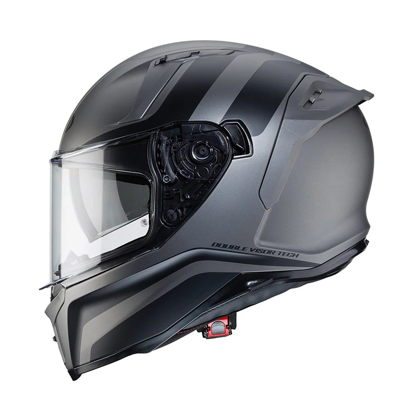 Avalon è l’integrale di casa caberg dal design di ispirazione sportiva pensato per i più giovani ma non solo, considerando le ricche dotazioni di cui è dotato. La calotta è realizzata in due misure per garantire il massimo comfort e l’equilibrio perfetto tra le dimensioni del casco e la taglia del motociclista a tutto vantaggio del comfort di viaggio. AVALON è un casco adatto ai brevi spostamenti urbani ma anche ai più impegnativi percorsi extra urbani. AVALON è dotato di visiera antigraffio predisposta per l’inserimento della lente anti appannamento e del visierino parasole DVT (Double Visor Tech) facile da azionare anche con i guanti attraverso la leva posta sul lato sinistro. Entrambe le visiere sono facilmente removibili senza l’utilizzo di attrezzi per la pulizia o per la sostituzione. Le abbondanti prese d’aria regolabili presenti nella zona superiore ed inferiore del casco permettono un ottimo ingresso di aria fresca e grazie agli estrattori di aria posti sotto lo spoiler posteriore è garantito un ottimo ricircolo d’aria. L’interno, removibile e lavabile, è realizzato con tessuti e reti traspiranti. Il cinturino è dotato di fibbia micrometrica per una facile regolazione. AVALON è dotato di sottogola e nasetto entrambi removibili. AVALON può essere equipaggiato con il comunicatore Caberg JUST SPEAK EVO o con altro comunicatore in commercio grazie alle sedi presenti all’interno per alloggiare gli altoparlanti. Oltre alle versioni monocolore Nero opaco e Bianco, AVALON è offerto in tre versioni grafiche e numerose varianti colore: HAWK e GIGA sono le due versioni grafiche più accattivanti e sportive mentre la versione BLAST è più classica ed elegante. Calotta: LG CHEM HI-IMPACT ABS. Doppia taglia calotta. Doppia visiera (trasparente e fumé). Sganciamento rapido visiera. Visiera antigraffio pronta per FogCity GO. Fibbia micrometrica. Aerazione interna. Interno estraibile e lavabile. Profili antipioggia. Stop-wind amovibile. Paranaso estraibile. Predisposto per alloggiamento Just Speak EVO o altri interfoni in after market.