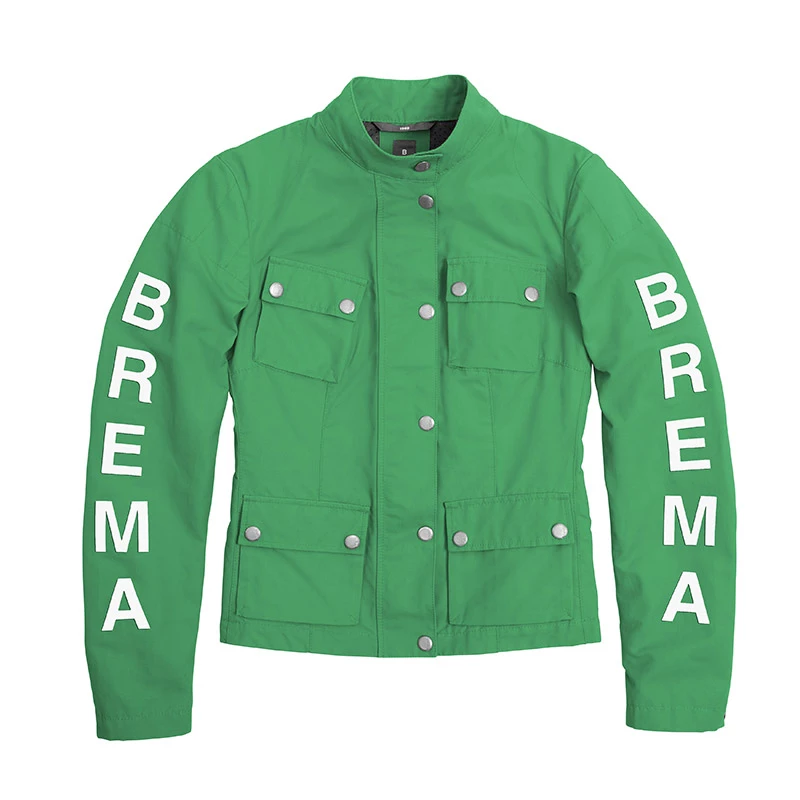 Linea Silver Vase: l’icona dell’unicità Brema. Storia, radici, tradizioni e raffinatezza in una giacca eterna. Le giacche Silver Vase da uomo e da donna sono realizzate nel tessuto italiano poliammide/cotone. Lo stesso di allora. Vestibilità slim fit. La mano naturale del colore si unisce alla tenacità e alla performance delle fibre più resistenti, combinando tenuta allo strappo e all’abrasione con un comfort eccezzionale. E’ il capo più leggero della collezione adatto all’uso con qualsiasi tipo di moto. Classico taglio con le quattro tasche, scritta Brema sulle maniche, colletto a faschetta, regolazione in vita e protezioni spalle e gomiti certificate livello 1 montate un un giacchetto di rete removibile velocemente dalla giacca per passare velocemente dalla versione con protezioni a quella di giacca fashion per il tempo libero.